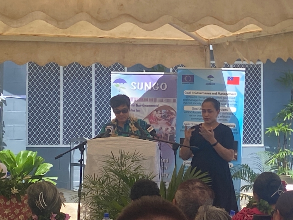 9月25日、我が国の草の根・人間の安全保障無償資金協力(GGP)による資金協力で建設されたサモア・コミュニティ開発総合研修センターの完成を記念し、引渡式が行われ、鈴木亮太郎大使、ムリポラ・アナロサ・アレ・モリオオ首相代理兼財務大臣、SUNGOの会長が参列しました。