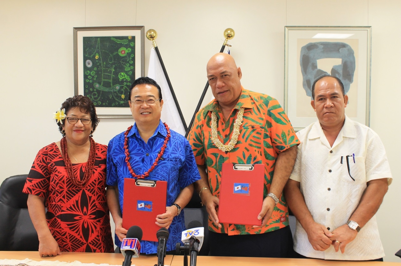 The Signing Ceremony was hosted by His Excellency Ambassador Extraordinary and Plenipotentiary of Japan to Samoa, Maugaoleatuolo Shinya Aoki, and it was well attended by the Member of Parliament Lealailepule Rimoni Aiafi as well as the President and members of the Faleata College Committee.